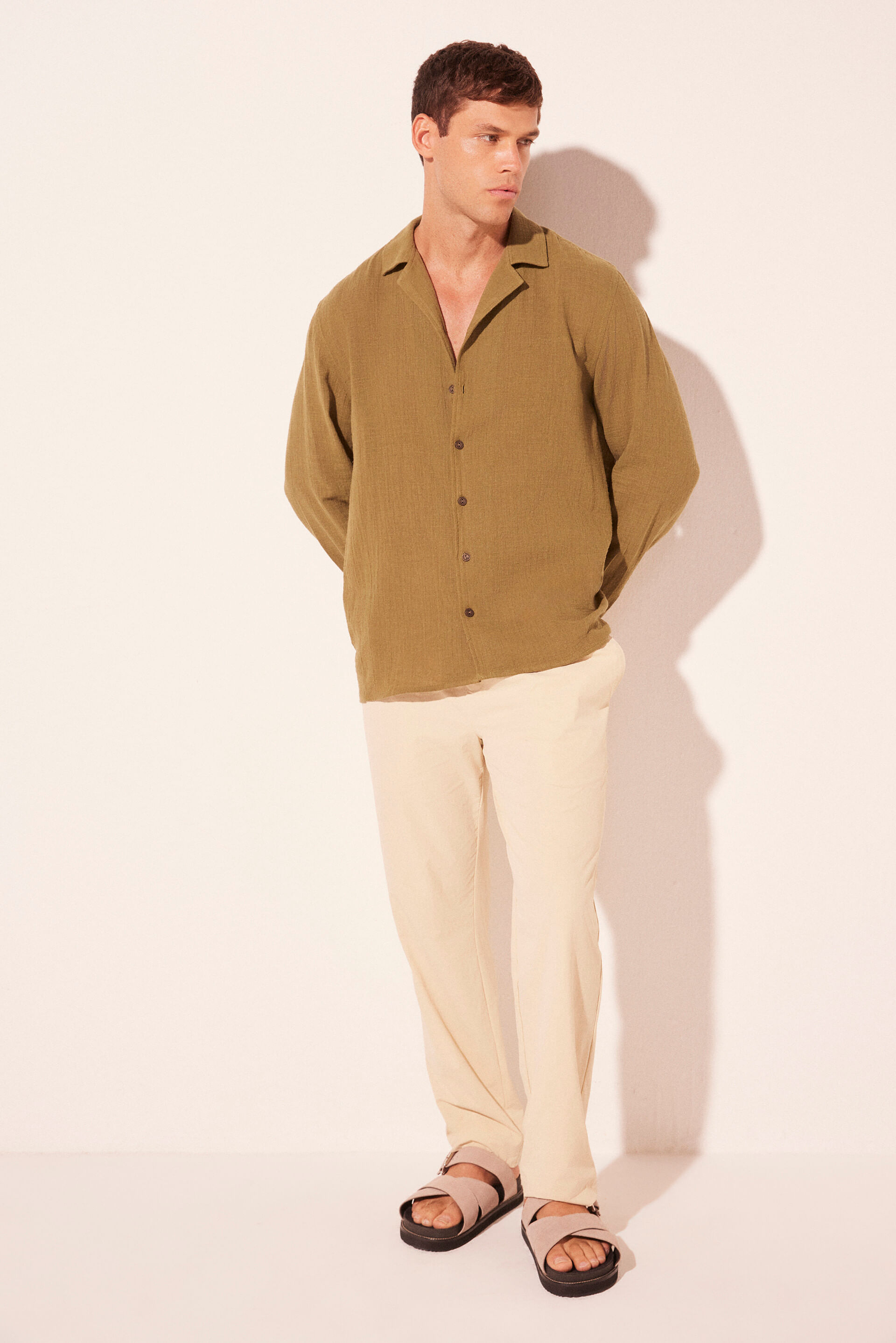 A Calça Reta Coqueiro Bordado, em nylon de poliamida com elastano, une praticidade e sofisticação em uma modelagem reta com cós elástico que proporciona conforto e mobilidade. As pregas frontais e os bolsos laterais e posteriores com aba acrescentam funcionalidade e estilo, enquanto o tecido tecnológico garante leveza e durabilidade. A etiqueta de couro personalizada finaliza a peça com o toque refinado e contemporâneo característico da ÁGUA DE COCO.