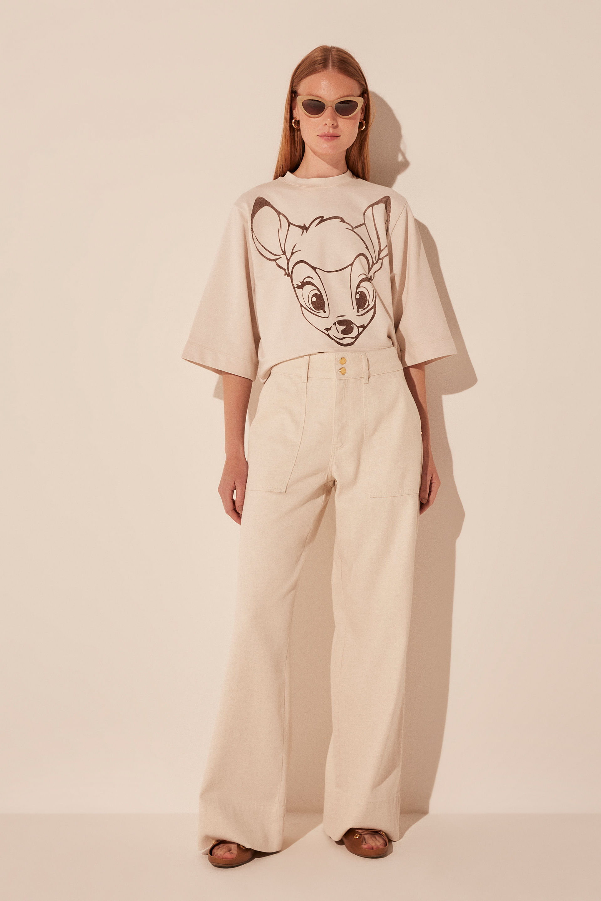 Confeccionada em sarja de linho, um tecido estruturado e leve, essa calça reta completa propostas versáteis com frescor.