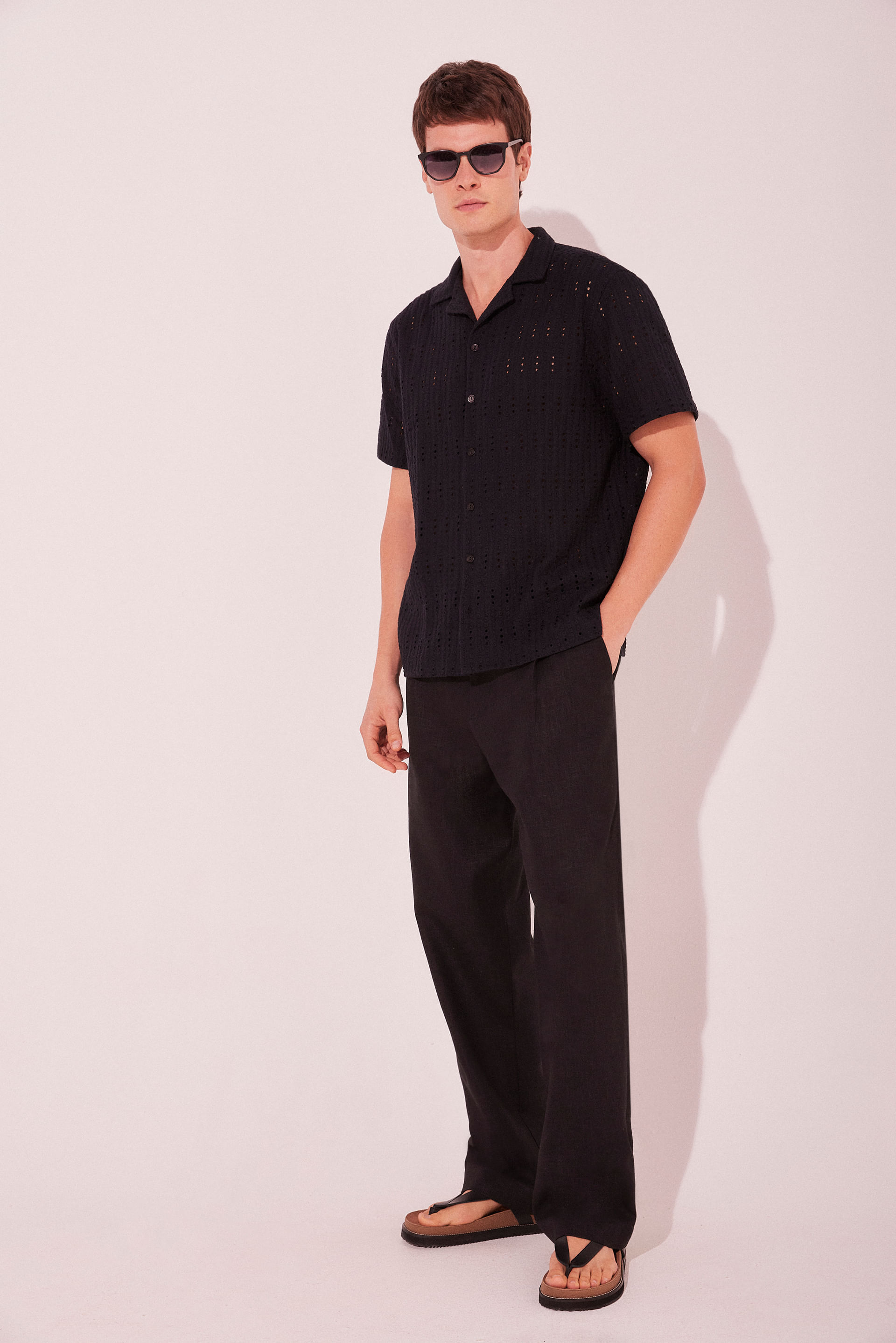 A Calça Reta com Pregas do mix Noite, confeccionada em rami misto, é a escolha perfeita para quem busca elegância com um toque contemporâneo.