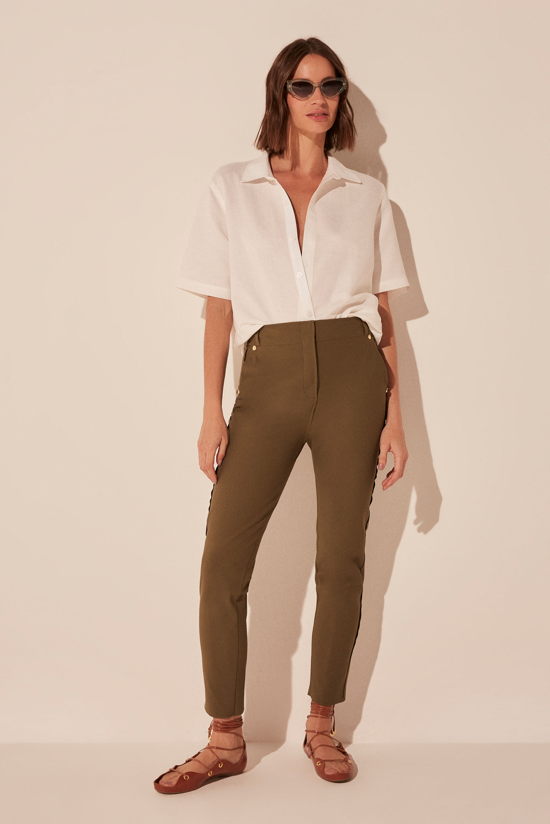 O mix Folhagem traz esta calça feminina com modelagem slim, indispensável para um visual casual chic.