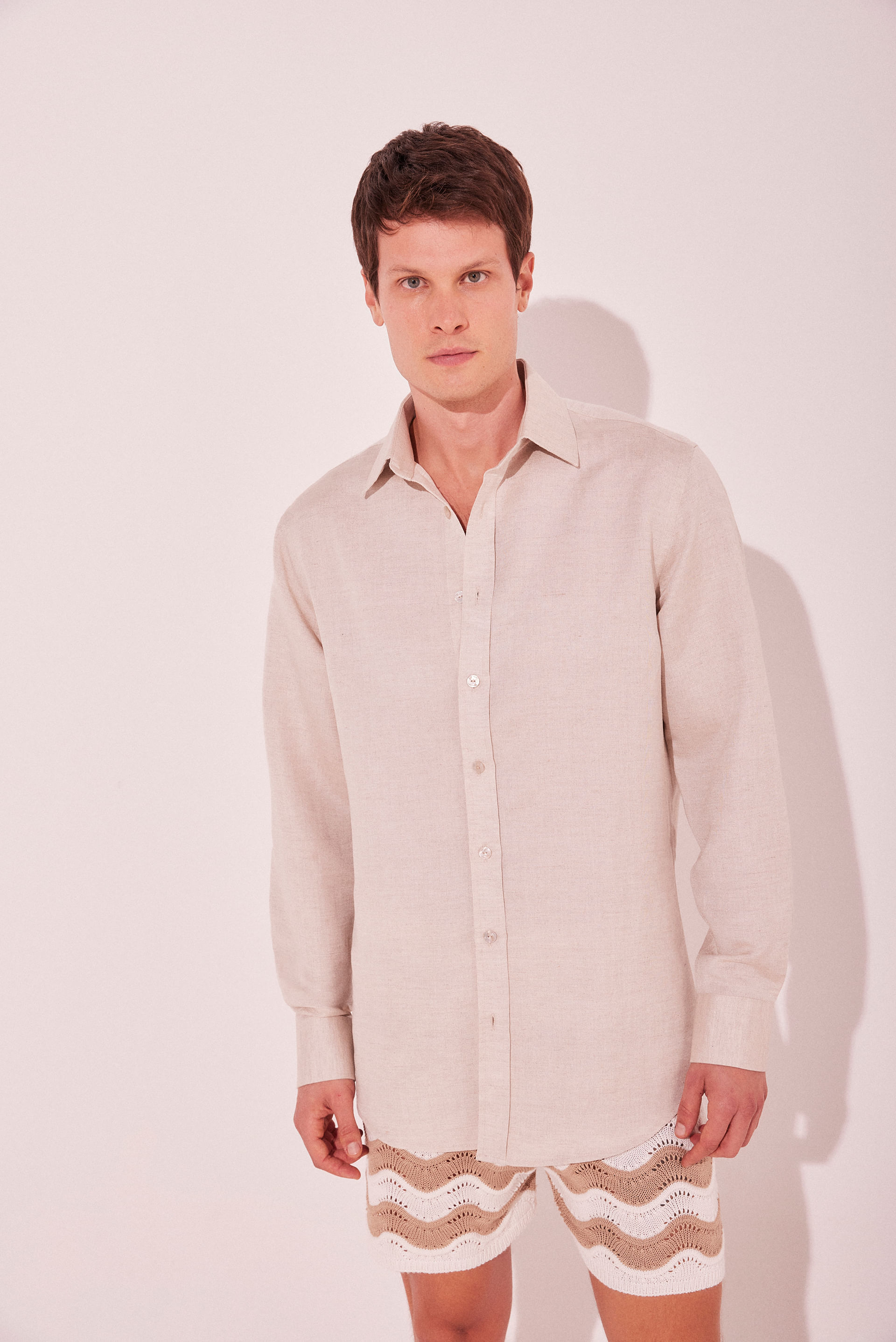 A Camisa Manga Longa do mix Grão, confeccionada em linho soft, une sofisticação e leveza em um design versátil.