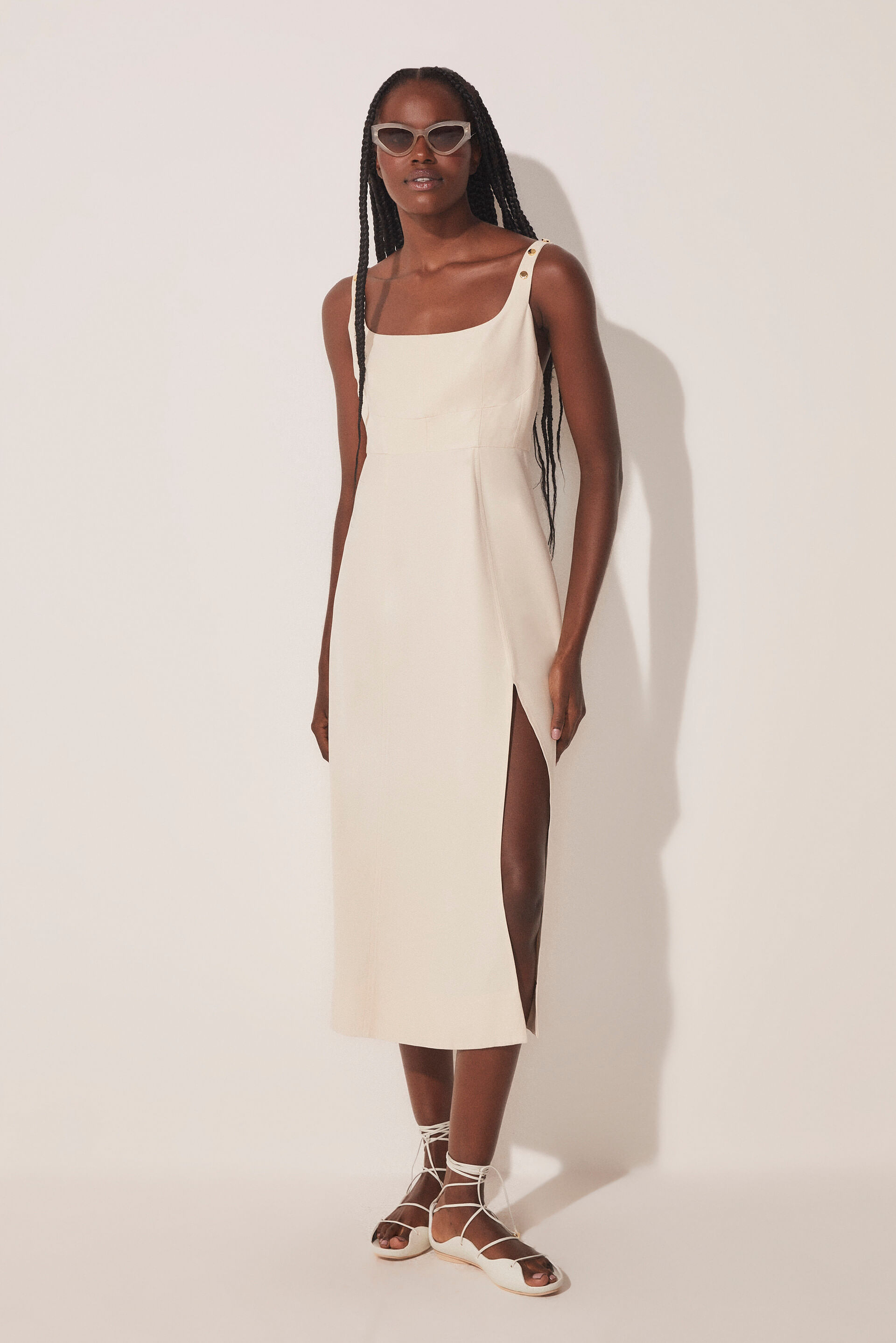 Destaque do mix Alfaiataria Ilhas, este vestido midi combina estilo e elegância em uma só peça.